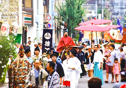 式年大祭の年のみに神幸祭として町神輿とともに行列も行われます。