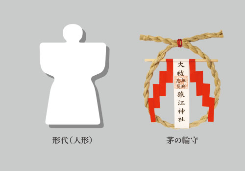 祓いによって本来の奇麗な心にかえすのです。大祓神事では、人の罪穢れを移した紙の人形(形代)を身代わりに清めます。